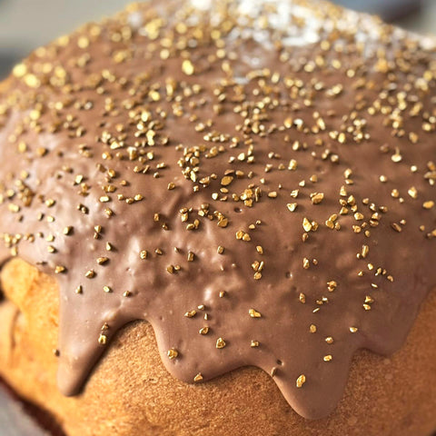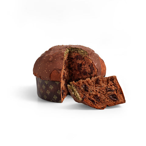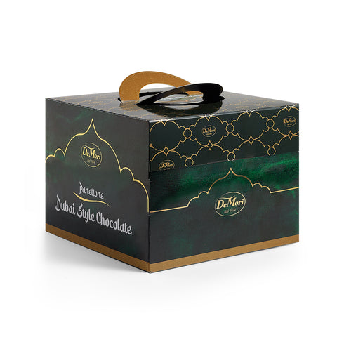 Un panettone che racconta l’incanto del deserto e lo splendore delle notti mediorientali. Soffice impasto al cacao, impreziosito da gocce di cioccolato al latte. In superficie, un’elegante sinfonia: crema di pistacchio vellutata, fili croccanti di pasta kataifi, un manto di cioccolato al latte e pepite perlescenti dorate, come gioielli su una corona. Racchiuso in una confezione raffinata ispirata allo stile lussuoso di Dubai, è molto più di un dolce: è un’esperienza, un gioiello da assaporare